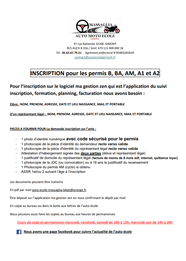 Les stages de codes sont organisés à chaque vacance scolaires sous réserve d’un minimum d’inscrit.